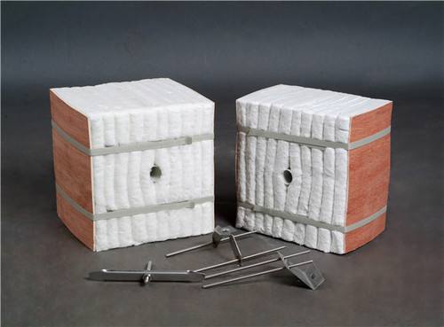 1、模塊在安裝后剪開打包帶,寬度方向由于纖維膨脹能緊緊擠壓在一起,長度方向?yàn)檠a(bǔ)償加熱后的纖維收縮造成的縫隙,需將陶瓷纖維毯折成與模塊同樣的厚度,填塞于模塊長度方向上兩行模塊之間,以達(dá)到較好的密封效果。