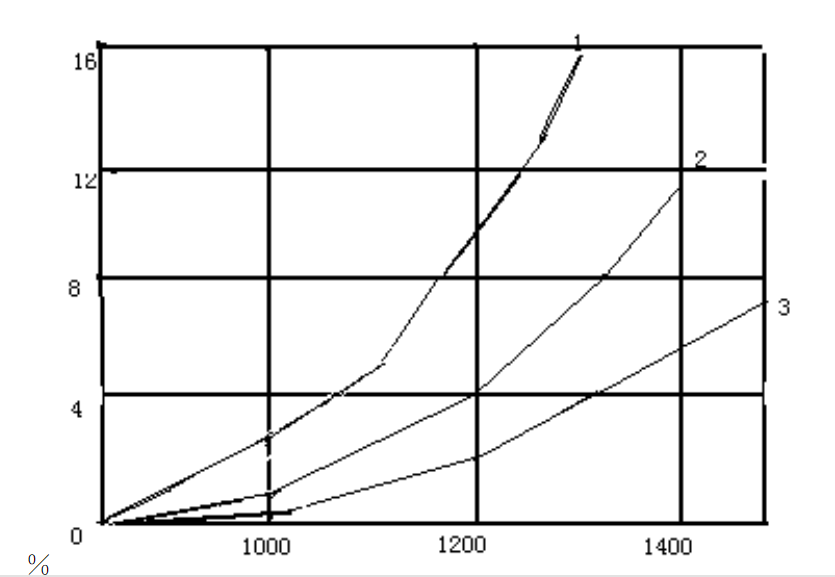1260型纖維加熱收縮率隨溫度變化示意圖。
