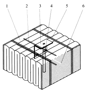 1、陶瓷纖維毯;2、埋入門口內(nèi)部的埋銷釘;3、埋入模塊的錨固件;4、用原裝的導(dǎo)向桿;5、捆扎帶;6、兩側(cè)保護夾板。