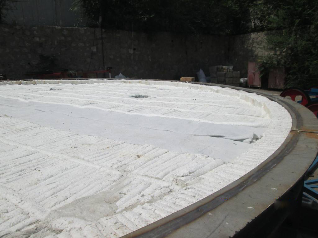 加熱罩的下部通常沿切線布置2排或3排燒嘴,有高速 氣流排出,陶瓷纖維的抗風(fēng)蝕能力較差,可選用能承受氣流沖刷和高溫沖擊的材料,比如耐火纖維復(fù)合預(yù)制磚。